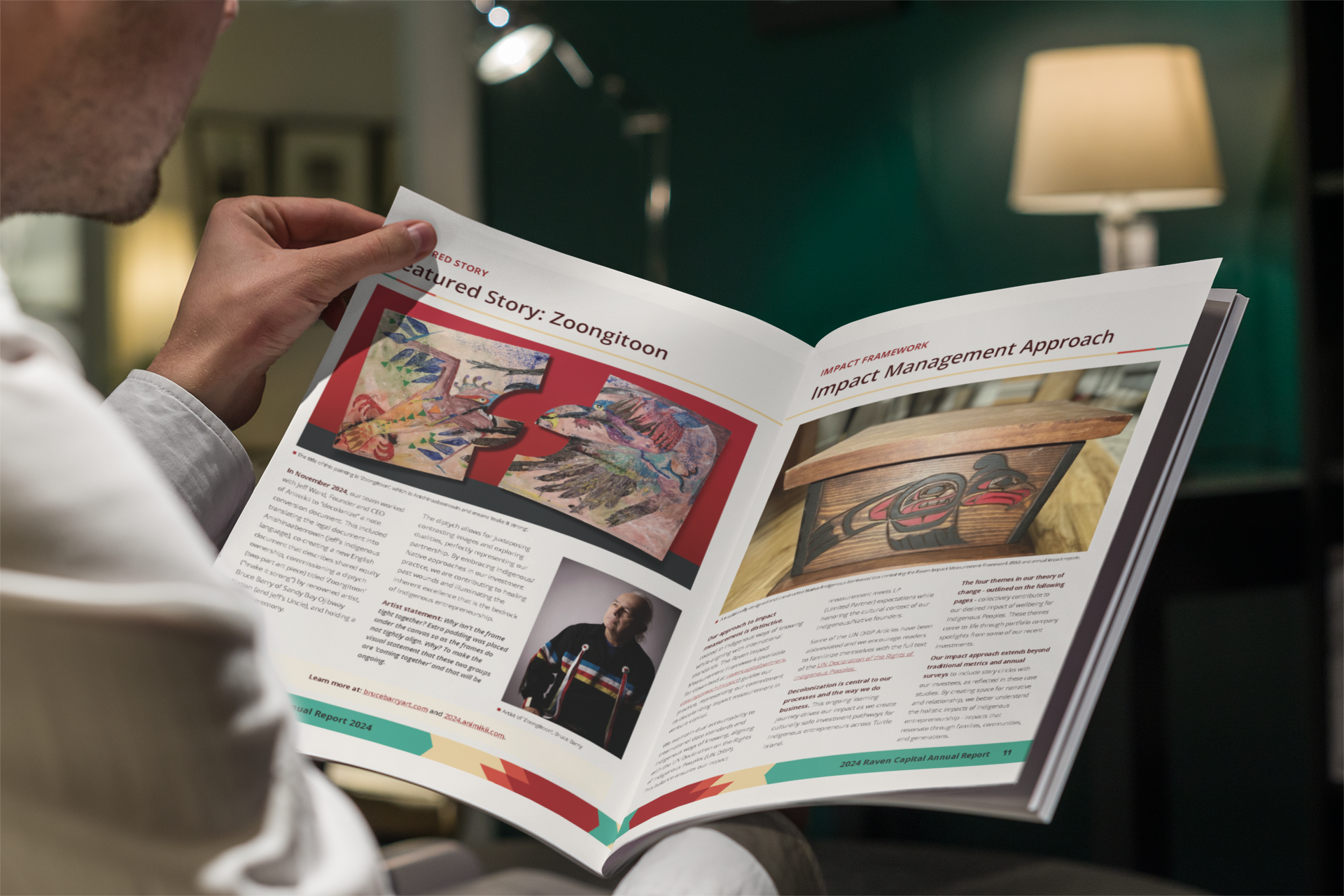 Raven Indigenous Capital Partners commissioned the design of their 2024 Annual Impact Report to celebrate the achievements of their Indigenous-led portfolio companies through values-based and culture-centred design. The goal was to honour the distinct identities of each business while reflecting a shared Indigenous worldview across both Canadian and U.S. contexts.
